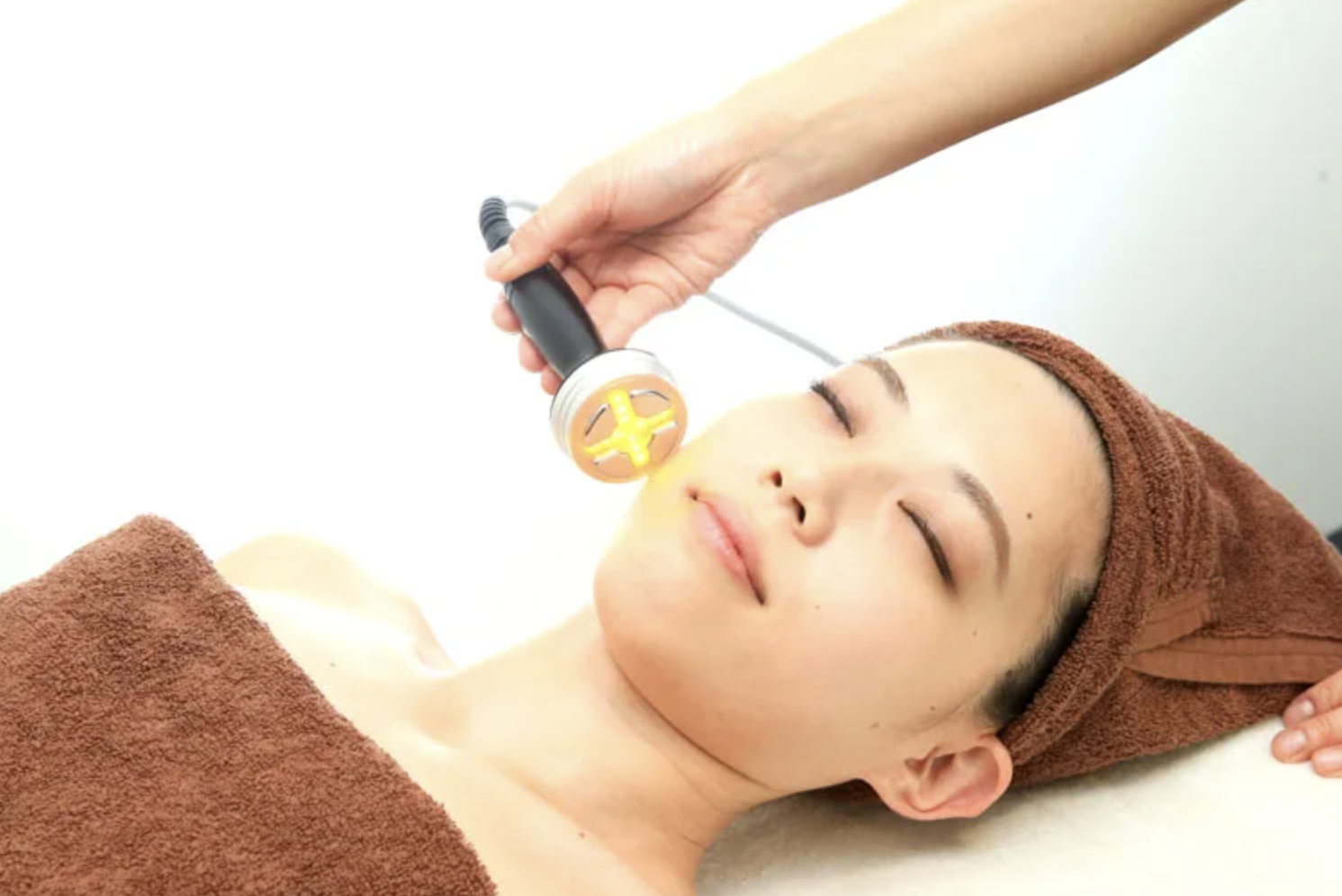 最新マシンを使って2種のラジオ派やLEDのライトによる施術エレクトロ歩レーションで美容成分の導入。