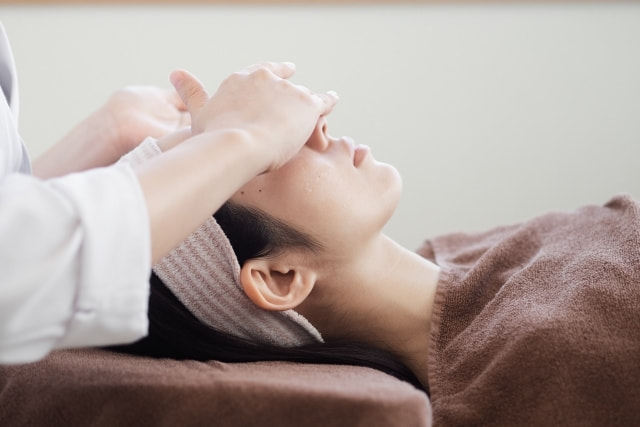 <フェイシャルマッサージ>カッサを用いて筋肉層の深部まで流してハリ↑リフト↑。頭皮もしっかりカッサマッサージで解してスッキリ!