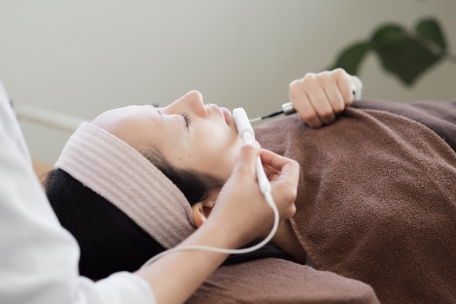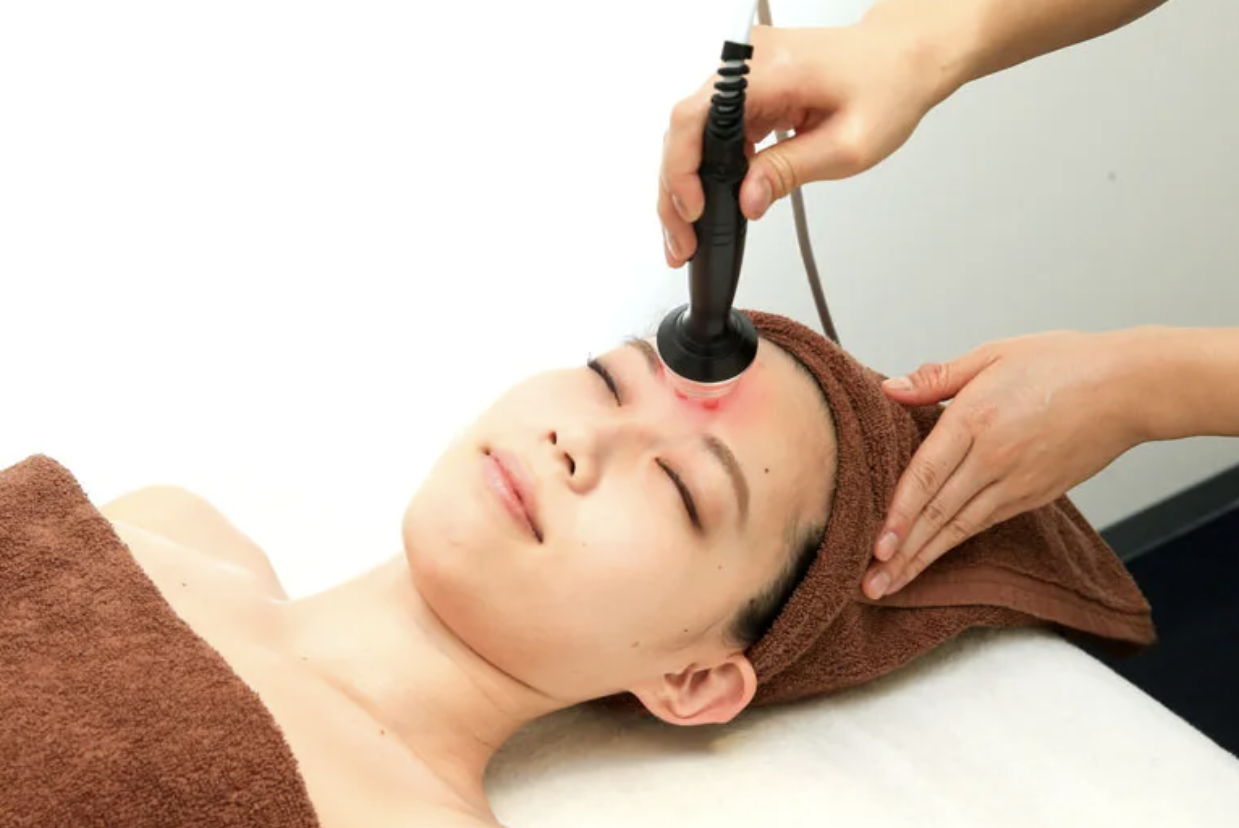 最新マシンを使って2種のラジオ派やLEDのライトによる施術エレクトロ歩レーションで美容成分の導入。